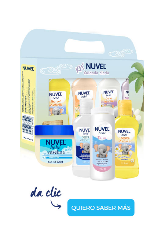 En sus primeros meses, te recomendamos humectarla dos veces al día con la crema Nuvel. Su suave fórmula de rápida absorción te ayudará a cuidar y proteger su piel.
